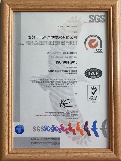 成都市訊鴻光電技術(shù)有限公司于2020年12月順利通過著名的質(zhì)量認證管理機構(gòu)SGS的 ISO9001:2005質(zhì)量體系認證,未來會以更高更嚴格的質(zhì)量為工作目標,全力以赴為客戶提供優(yōu)秀的產(chǎn)品技術(shù)服務!