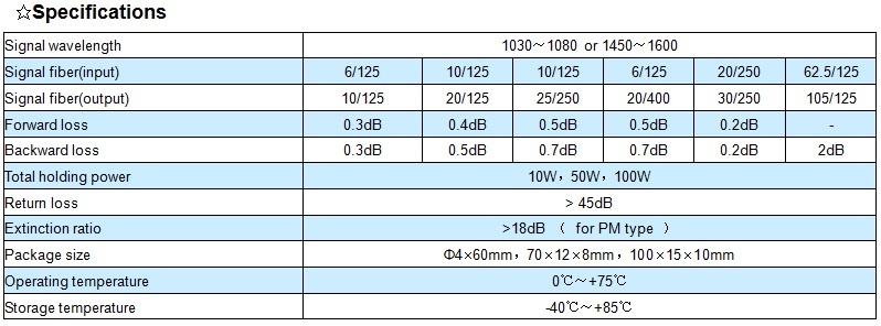 Fiber mode field adaptor (MFA) features high output power, high converting efficiency, stable and reliable. It can be integrated into medium and high power fiber laser and amplifier.