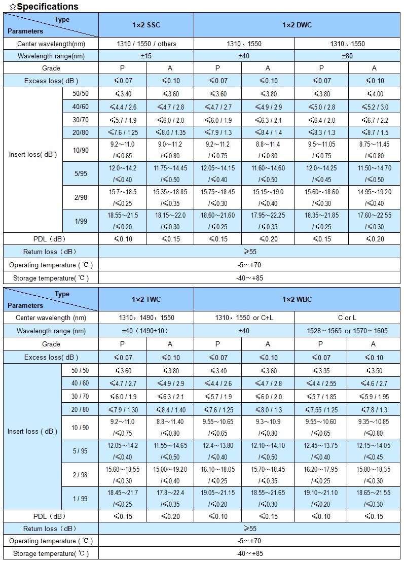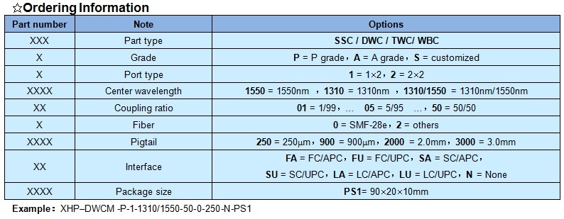 XHP 1×2 single mode fiber coupler module features low insert loss, high return loss, low PDL, stable and reliable. It can be integrated into fiber communication network, fiber sense system, and fiber test equipment etc.