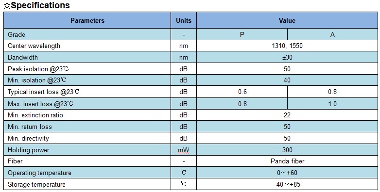 XHP PM fiber circulator features low insert loss, high return loss, high extinction ratio, stable and reliable. It can be integrated into PM fiber amplifier, fiber sense, and fiber testing equipment etc.