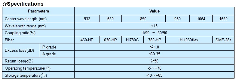 XHP 1×2 special fiber coupler features low insert loss, high return loss, low PDL, stable and reliable. It can be integrated into fiber communication network, fiber sense system, and fiber test equipment etc.