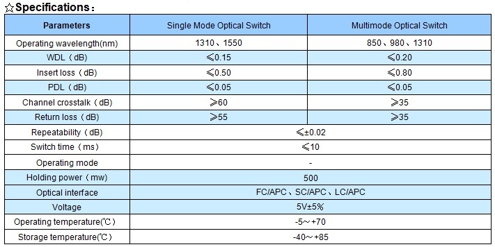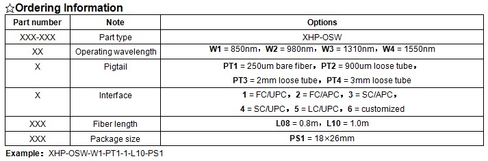 XHP fiber optical switch features low insert loss, fast response, include 1×2,1×3,1×4,1×8,1×12 etc. stable and reliable. The switch can be integrated into optical test equipment and optical network etc.