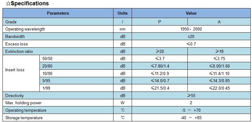 XHP 2000nm polarization maintaining fiber coupler features low insert loss, wavelength and coupling ratio can be customized, stable and reliable. It can be integrated into fiber gyroscope, fiber sense, fiber measuring equipment and PM fiber amplifier etc.