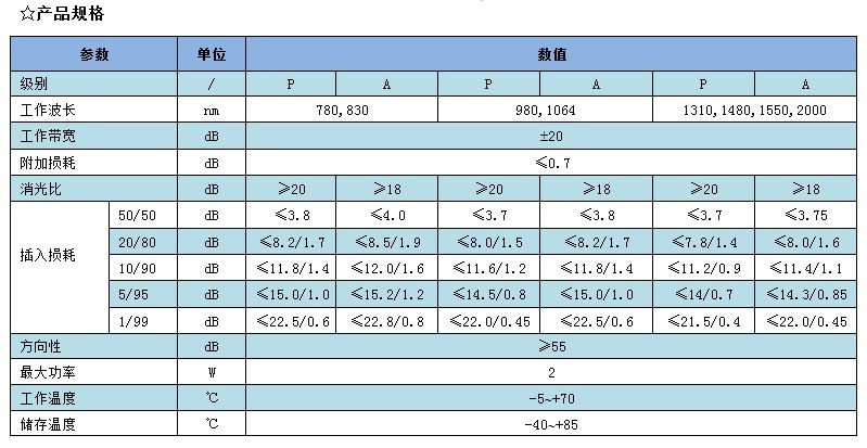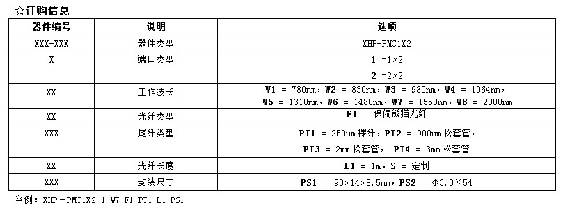 (XHP-PMC) 1x2/2x2保偏光纖耦合器特點為低插入損耗和附加損耗,波長和分光比可定制,穩(wěn)定可靠。適用于光纖陀螺/水聽器,保偏光纖放大器,傳感設備等。