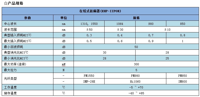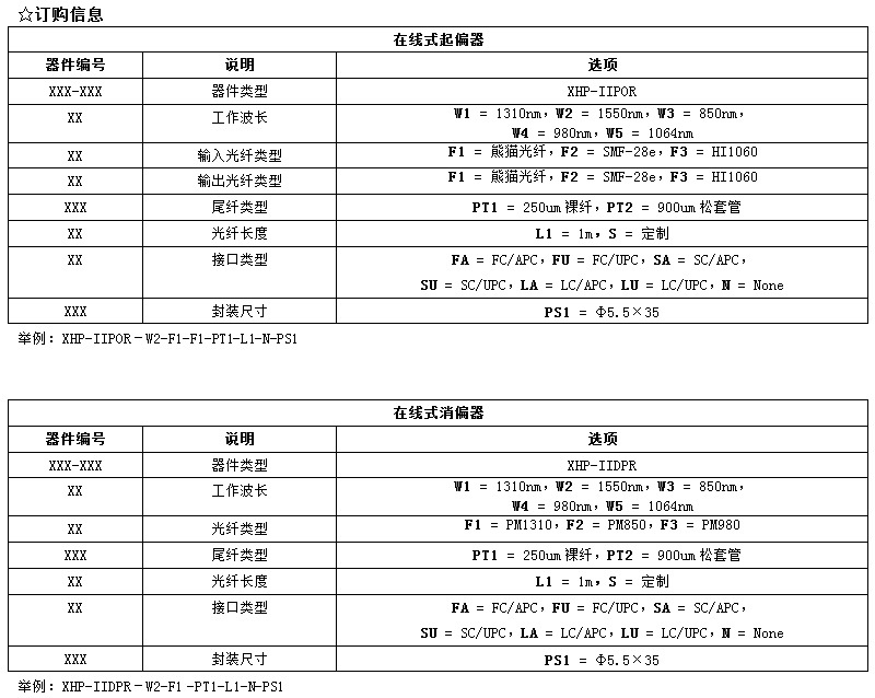 (XHP-IIPOR/IIDPR) 在線式起偏器/消偏器插入損耗低,回波損耗高,穩(wěn)定可靠。適用于光纖傳感系統(tǒng),測(cè)試設(shè)備,科研實(shí)驗(yàn)等。