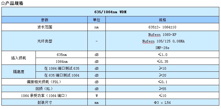 (XHP-WDM635/1064) 635/1064 WDM 光纖波分復(fù)用器低插入損耗,高回?fù)p,高隔離度,穩(wěn)定可靠。適用于光纖放大器、光纖激光器和測(cè)試設(shè)備等。