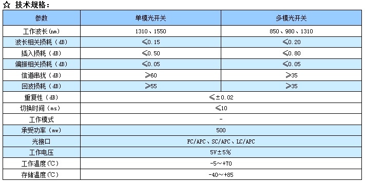 訊鴻提供的機(jī)械式光開關(guān)系列,包括1′2,1′3,1′4,1′8,1′12等規(guī)格,響應(yīng)快,插損小,穩(wěn)定可靠,簡(jiǎn)單易用,非常適合于光學(xué)測(cè)試和光網(wǎng)絡(luò)應(yīng)用。