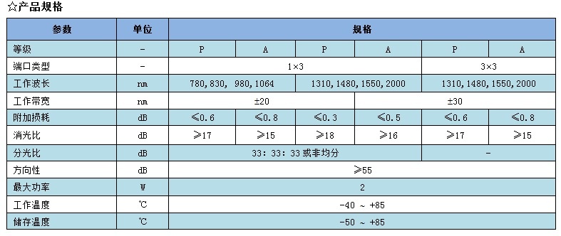 (XHP-PMC) 1x3/3x3保偏光纖耦合器特點為低插入損耗和附加損耗,波長和分光比可定制,穩(wěn)定可靠。適用于光纖陀螺/水聽器,保偏光纖放大器,傳感設(shè)備等。